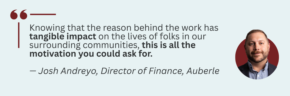 A: The awareness of being part of something bigger. Bigger than producing financial statements or monitoring cash flow - knowing that the reason behind the work has tangible impacts on the lives of folks in our surrounding communities is all the motivation you could ask for.
