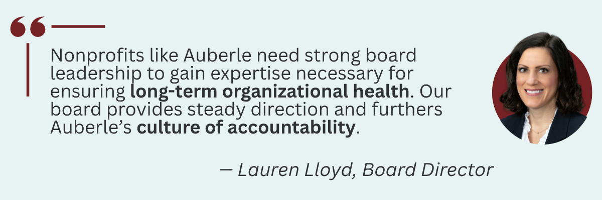 Q: How does Auberle’s Board of Directors help guide the organization in achieving its mission?